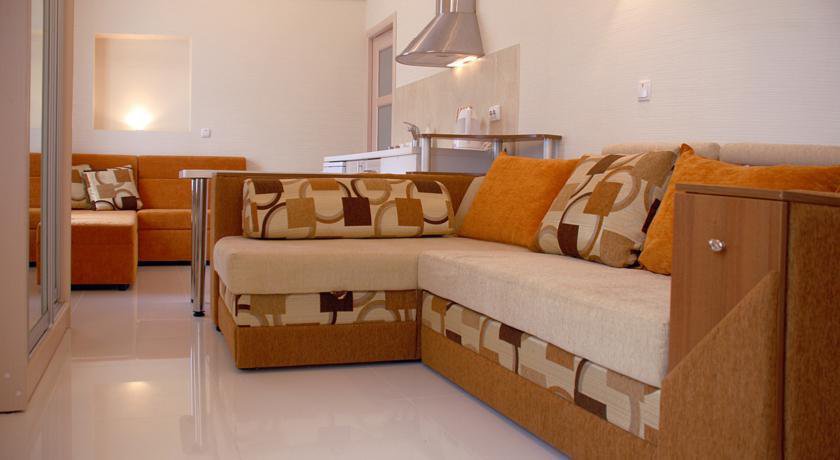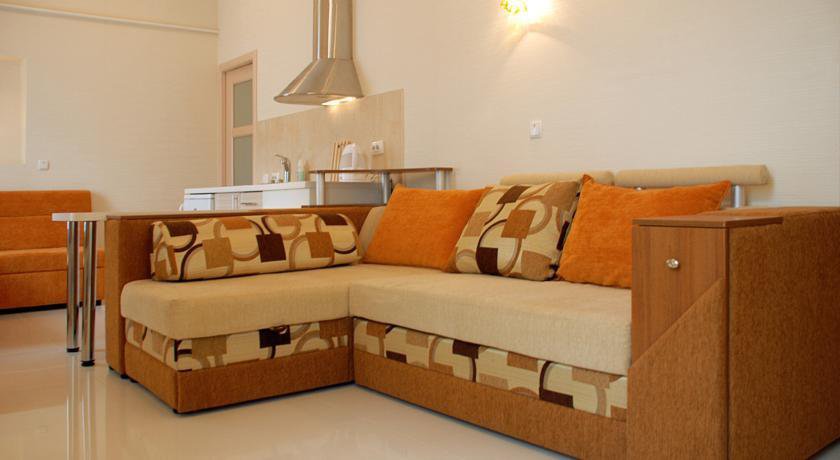 Номер-студио с диваном, мини-кухней и электрическим чайником.